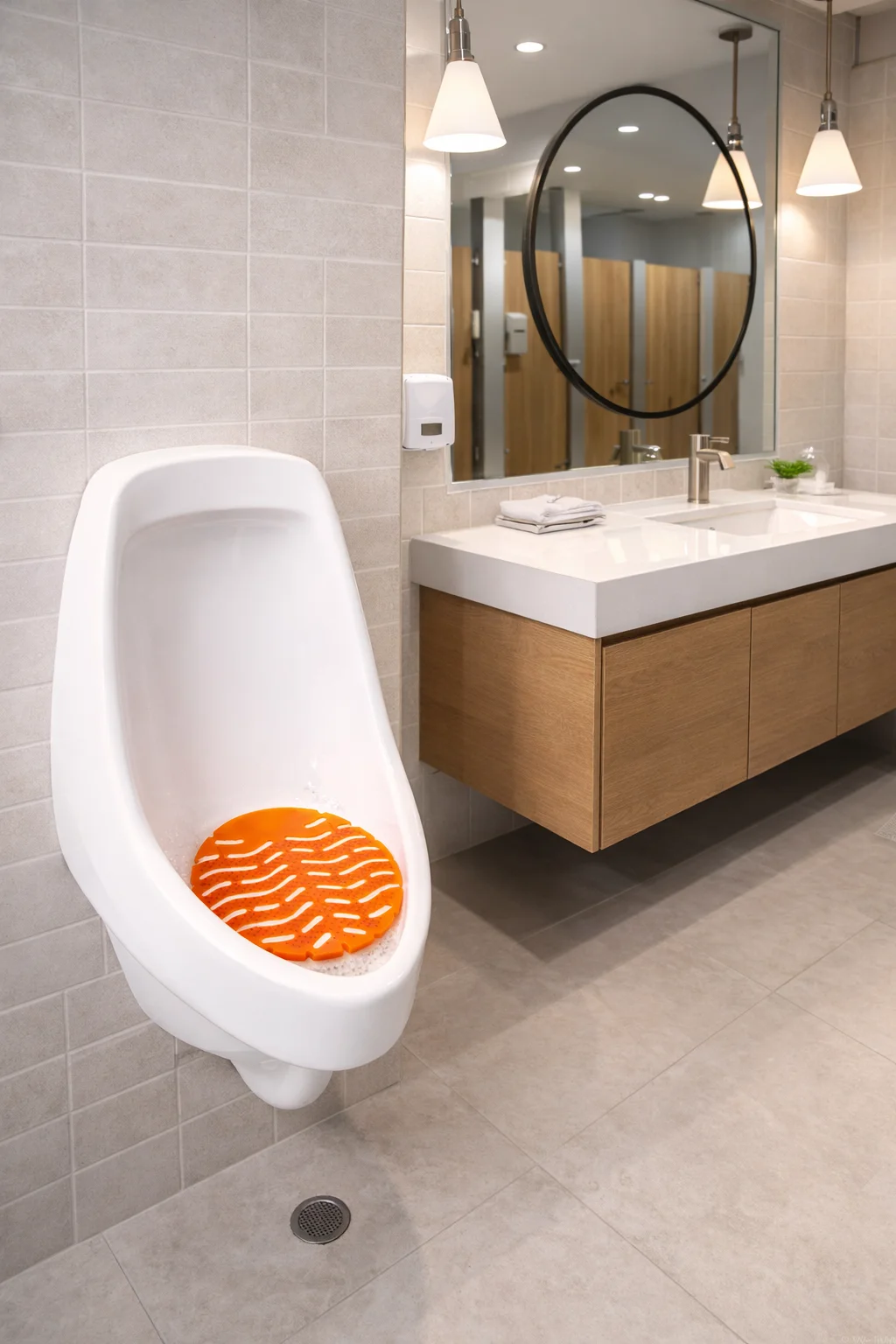 Alfombrilla urinaria profesional con efecto antisalpicaduras y control de olores hasta 30–60 días. Diseño flexible, enzimas desodorizantes y marcadores de dirección del flujo. Ideal para baños de alto tránsito.